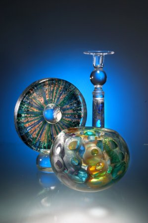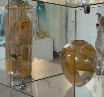 Allister Malcolm Please click the images above to enlarge them. Allister Malcolm graduated from the University of Wolverhampton in 1997 with BA Hons. In three dimensional design, specialising in glass with sculpture. The occupancy of the studio scholarship at Broadfield House Glass Museum enabled a continual launch of the artist's profile. With an attention to detail Allister Malcolm produces dynamic, sculptural forms with a functional twist. Drawing inspiration from the natural world, particularly marine life, he constantly amazes and intrigues. Pieces of Allister's glass have been presented to visiting heads of state. | ||||||