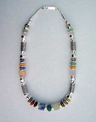 Anne Farag comes from an exotic background, her father being Egyptian and her mother Swedish. Many collectors of her work insist that something of these influences show through her work. She trained at Birmingham School of Jewellery and Silversmithing, gaining a Credit in City and Guilds in advanced diamond mounting. This course was highly technical, and although she knew she would probably never work with diamonds exclusively, she now uses the technique in a highly creative way. Since returning to being a full time designer/maker, she has been developing a series of strong themes which involve etching silver with intricate patterns, and then combining them with semi precious stones to create jewellery that is both contemporary and unique. |