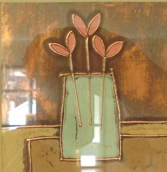 'Origin' are Chris Brook and Jenny Martin. Two designer/makers, who combine a simple approach to style and form, together with the use of unusual materials and techniques, to produce pieces which have acquired a timeless and textile quality. Jenny's semi abstract landscapes and Chris's naive imagery both draw on inspiration from coastal and rural aspects of living in the Scottish Borders. While influences of ethnic contemporary imagery are also apparent complimented by unique framing techniques. Each piece is created with care and attention to detail and finish. |