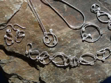 I started silversmithing after a long illness and fell in love with it straight away. I am inspired by sea themes and translate what I see into forms for my jewellery. I love to texture the surface of the metal, rolling designs in to the surface by hammering and reticulation (heating the surface until the metal flows). I make handmade chains for a lot of my work so that the whole piece is individually made. I look at the world around me for inspiration and change what I see like an abstract artist. |