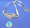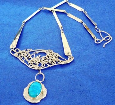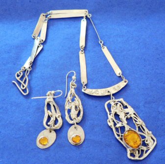Jane Mills jewellery has been described variously as 'wondrous, joyful and baroque', but it is also practical and extremely wearable. Each piece is a "one-off" and totally hand-made from start to finish. It is tested for practicability and effect before going on sale. Influences come from ancient civilizations, Art Deco and Art Nouveau. Beautiful semi-precious stones and unusual crystals play a big part in the initial designs, although the plainer pieces just let the silver speak for itself. |