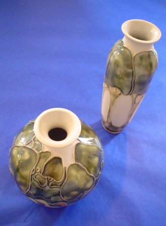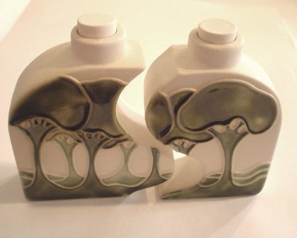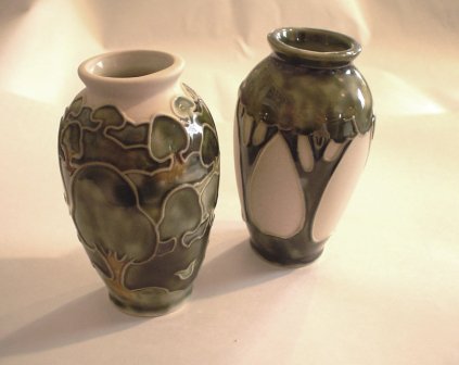 Jane and Pete McCormick have been designing and making their ceramics in Leicestershire since 1979. Jane trained at Loughborough College of Art & Design in Three Dimensional Design and Ceramics. Whilst Pete trained in Fine Art and Painting at Leicester College of Art. Their work is slip cast in semi porcelain and hand decorated in different coloured slips and glazes. The New Studio has chosen two of their ranges to show; Trees and Water and a design inspired by the Art Deco movement. |