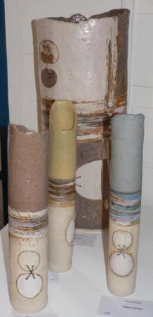 Jayne Lucas studied Fine Art in Chichester. In 1997 she became resident artist at Torquil Pottery, Henley-in-Arden where she continued to employ the textually appealing effect of rough torn paper in combination with clay. Wall pieces and vessels are made from recycled shredded paper and white stoneware clay. Inspiration is drawn from aerial landscape, weathered surfaces and rock striation. Jayne exhibits her ceramics in galleries throughout the country. |