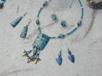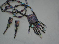 Misha Seelhoff Originally from California, I have made my home in the beautiful West Sussex countryside. My jewellery has developed over the years through my love for painting, colour, pattern and a fascination, since childhood, for beads. Popular for it's unique style, and surprising affordability, people of all ages have been collecting my jewellery for years. Each piece is constructed around a hand-painted piece of metallic-foil covered plastic, and therefore no two pieces are the same. It is individual, colourful and very artistic! - Misha Seelhoff |