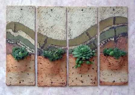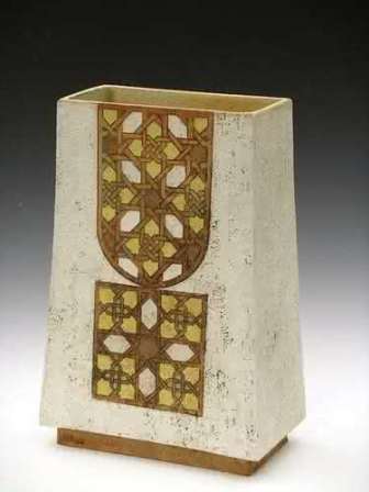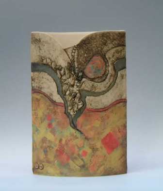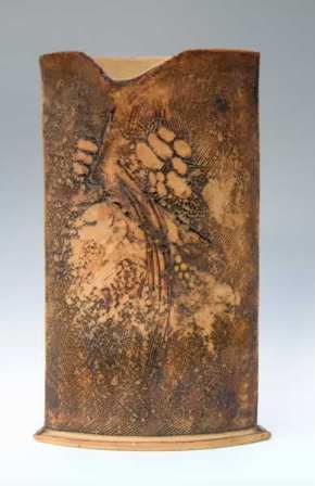 All of the work is hand built using slab construction, coiling and occasionally throwing and coiling combination. Craft crank and ‘T’ material are used, fired to 1250c in oxidation, only limited use made of glazes with colour coming from metal oxides and high firing slips. Firing to this temperature ensures that all the work is frost proof and can safely be left outside all year. On occasion multi-firings are employed to allow for further refinement of the ‘painted’ surface. Principally surfaces are either textural or incorporate landscape based abstraction that reflects and responds in particular to the Lakeland Fells. |