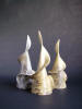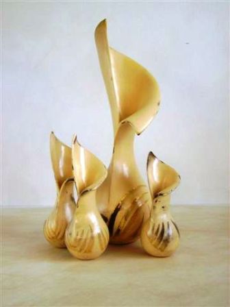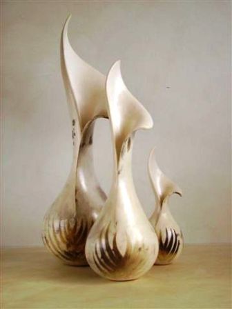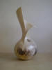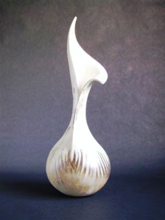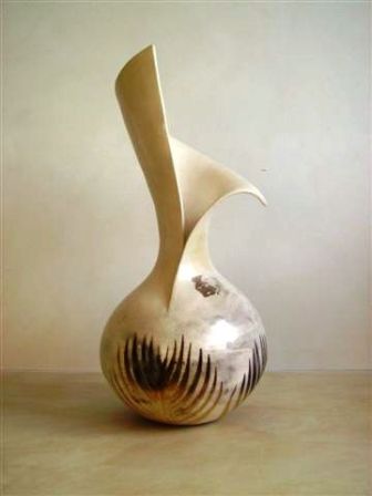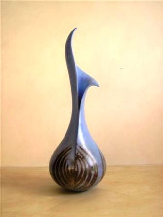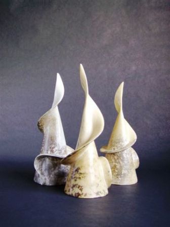 The basic form of the sphere provides the core of this work and combined with an interest in geology, fossils and patterns in nature feeds the current output. I work as intuitively as possible and the hand built form will dictate its nature early in the making process. After refining, coloured slip is applied; the surface is burnished and the work fired to 1000 degrees C. Patterns are created using various masks prior to smoke firing with paper, wood shavings and sawdust - a process that produces random and, sometimes, completely unexpected results. It also provides the organic, sensuous and tactile qualities that excite me. Finally, after cleaning, the work is polished with pure beeswax, enhancing both colour and shine. Sometimes the work is pierced so that beaten copper, silver or gold can be added - Penny White |