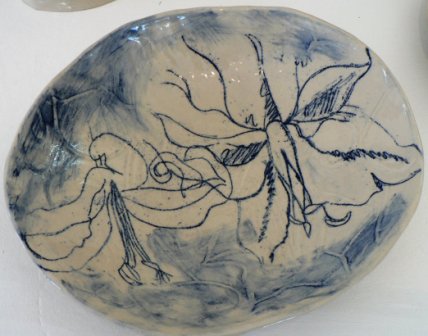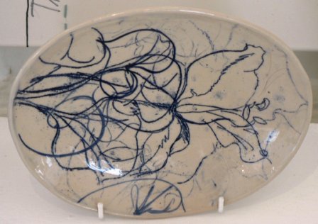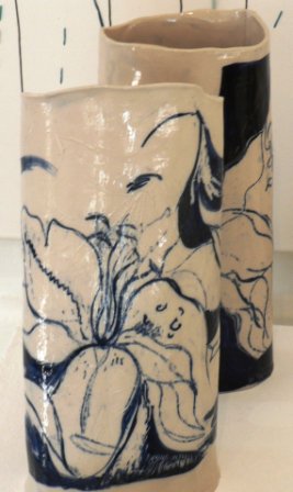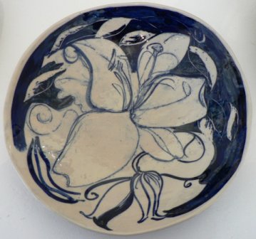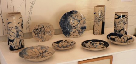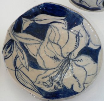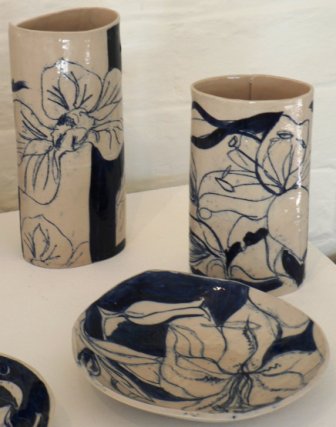 Rachel Thompson has been developing her decorative design work since completing her BA and MA in Surface Design in 2000. This includes using a variety of techniques to apply oxide to create a contrast of painted, drawn, stencilled and press moulded effects. These are applied directly to hand-built and mould-made functional ware. Creating an interesting translation of her loose, free and organic drawing style inspired by natural forms. The white and blue ware is simple and contemporary. Each piece is original and individual. |