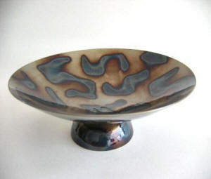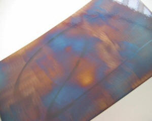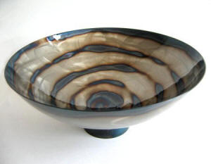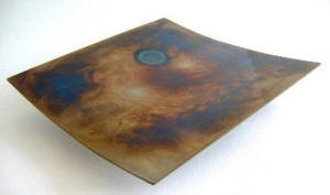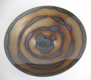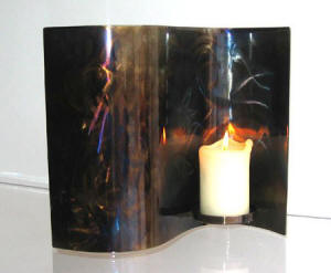 Artist Rob Mulholland, a graduate of Edinburgh College of Art has created this distinctive collection of craftworks. Each piece is individually coloured and patterned by applying heat over the surface of the metal to alter the colour. In essence the torch replaces the brush to draw out the various hues locked within the crystals of the metal. Each bowl is coated to seal in the colours, producing a unique one off art piece. |