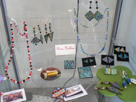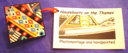 Rose Hallam hand paints wood, paper and card and uses photomontage to make distinctive and original jewellery. The use of colour and fine detail are essential to the work which is both abstract and traditional in design. The jewellery is light to wear, and uses sterling silver findings. Commissions are taken including those that celebrate a special event or occassion. A photograph supplied by the customer can be transformed in to a personalised piece of jewellery. | ||||||