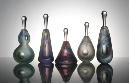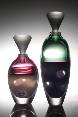 Stuart Ackroyd started making glass in 1984 and opened his studio in 1991, producing one off pieces, awards, commissions and several ranges of production work. All Stuart’s pieces of glass are hand blown in lead crystal, then selectively etched, ground, drilled hand polished by his highly skilled team, to reveal an inner chamber, or contrasting area of interest. Hand made glass pieces, by the very nature of the making process cannot be identical. Bubbles, lines, slight surface changes, or discolouration’s are characteristics of all hand made glass. They are not considered to be defects. |