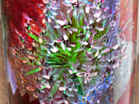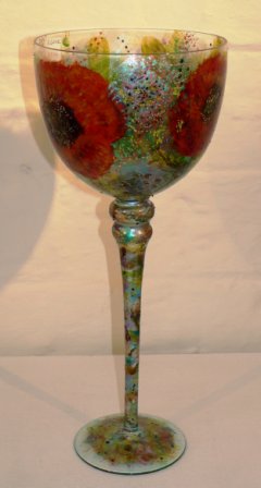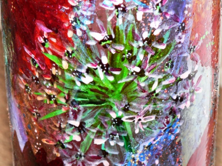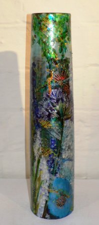 depth. Using the same painterly approach, she developed a technique for producing her work on glass, creating unique pieces of useable art. This has been featured on BBC television and, together with her large paintings is sold through galleries, interior outlets and private exhibitions. |
